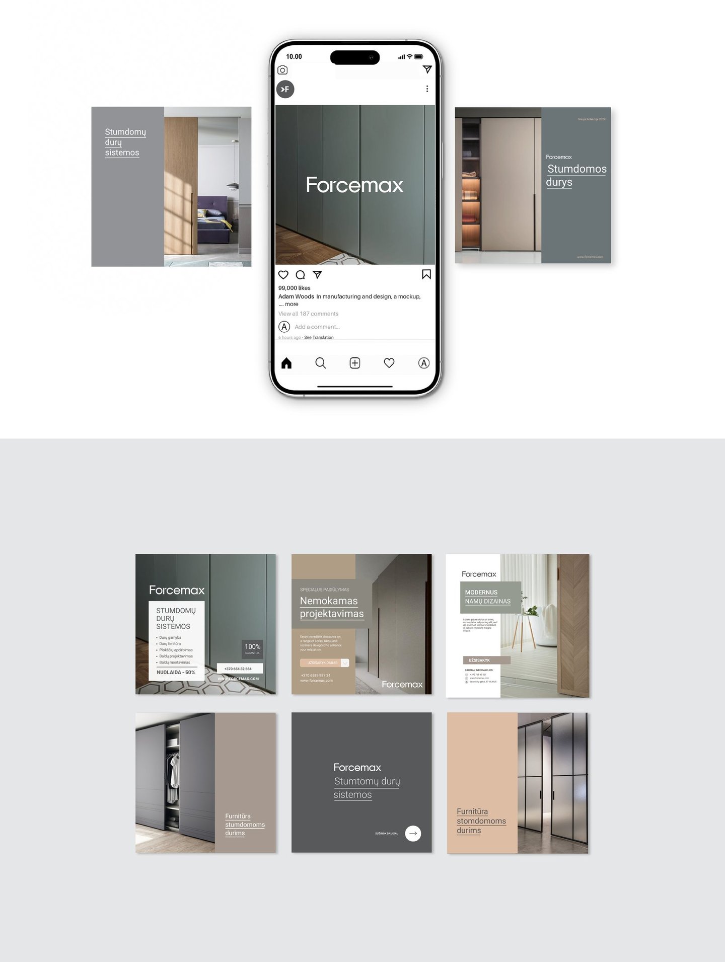 FORCEMAX – lietuviškas prekės ženklas, gaminantis nestandartines stumdomas duris ir spintas. Užduotis buvo atnaujinti logotipą ir sukurti vizualinį identitetą, kuris perteiktų išskirtines šios įmonės savybes – sąžiningumu pagrįstą tarpusavio bendradarbiavimą su kiekvienu klientu bei kokybę.