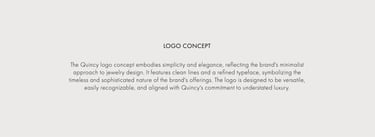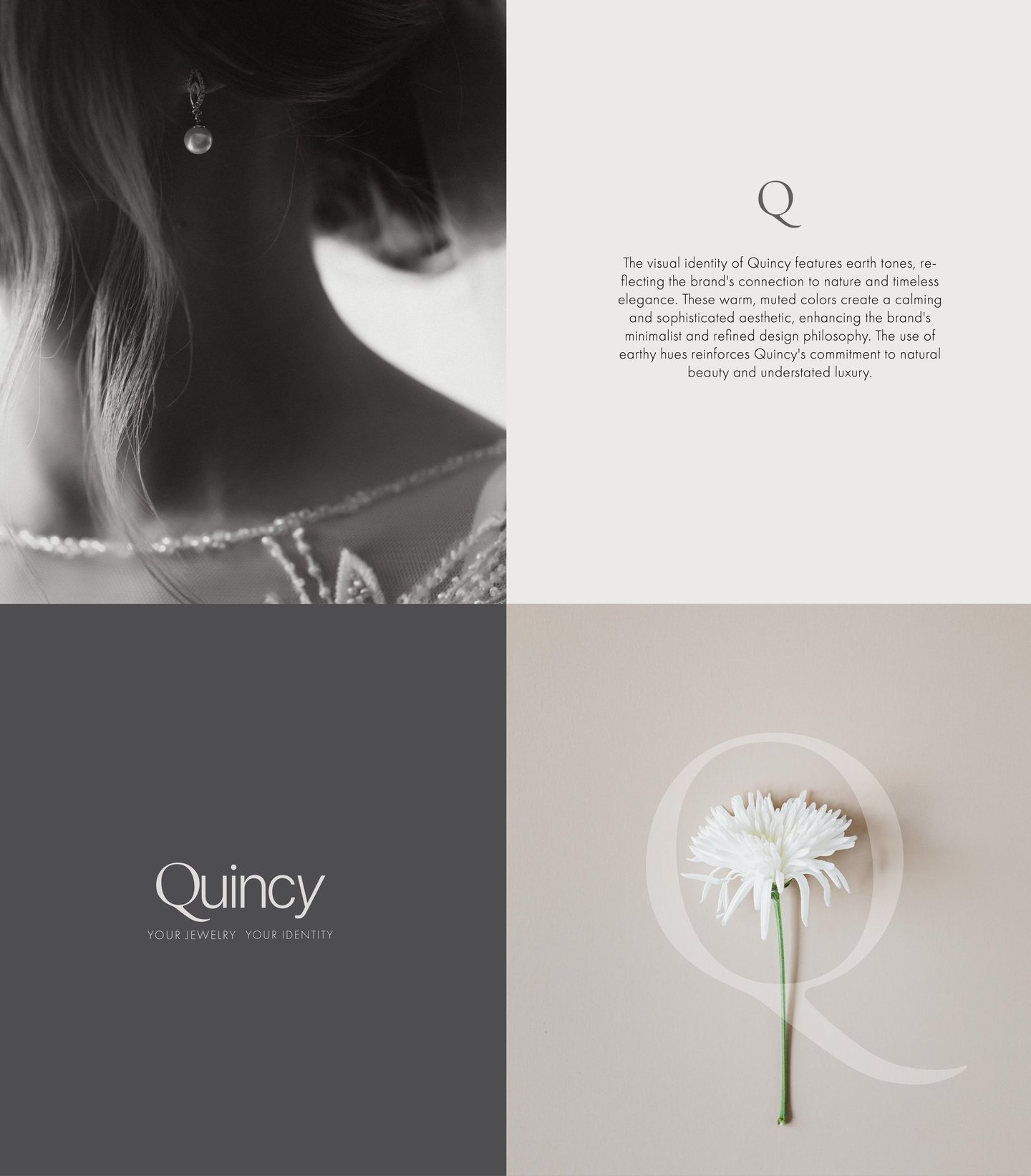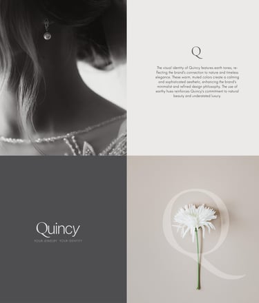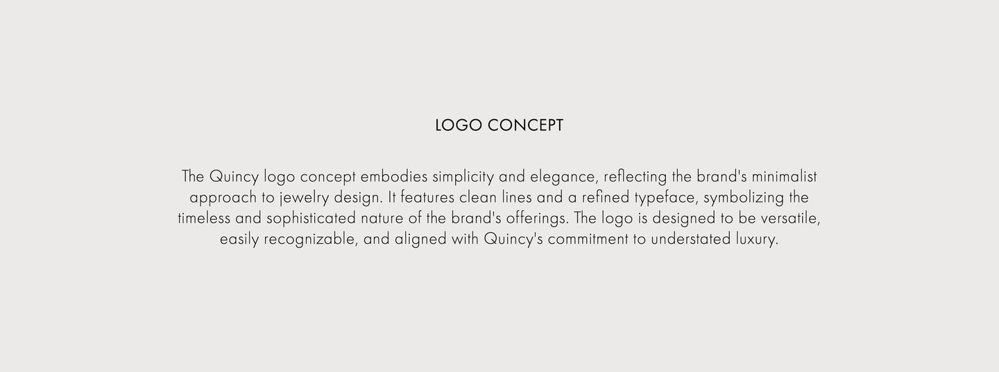 Quincy yra papuošalų prekės ženklas, žinomas dėl minimalistinio dizaino, kuris sujungia eleganciją ir kasdienį naudojimą. Daug dėmesio skirdami rankų darbui ir kokybiškoms medžiagoms, jie kuria nesenstančius papuošalus, tinkančius tiek moderniam, tiek klasikiniam stiliui. PagrindinIS tikslas, sukurti matomą ir išsiskiriantį logotipą bei visą vizualinį identitetą.